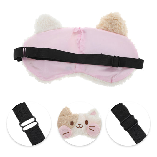 Portable Cat Adjustable Eye Mask Cute Eye Shade Cover for Office White Brown