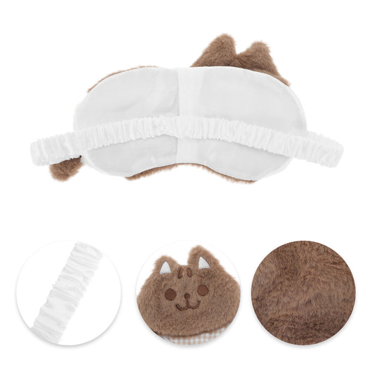 Portable Plush Cat Eye Mask Not Adjustable for Travel Brown