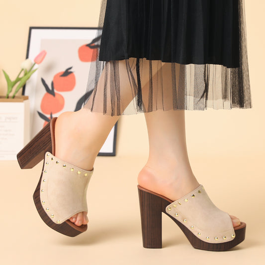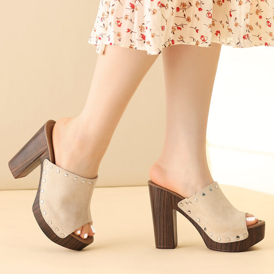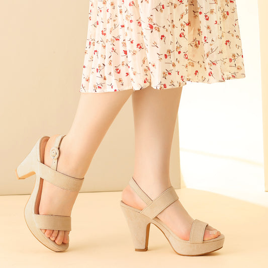 Sandalias de tacón alto con plataforma de ante sintético para mujer