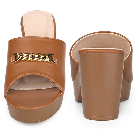 Sandalias de tacón grueso con plataforma y tira trasera para mujer