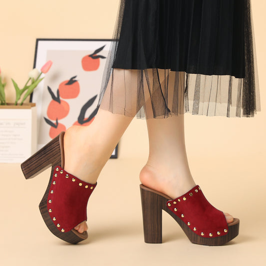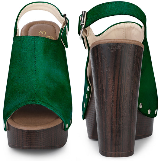 Sandalias de tacón grueso con plataforma y tira trasera para mujer