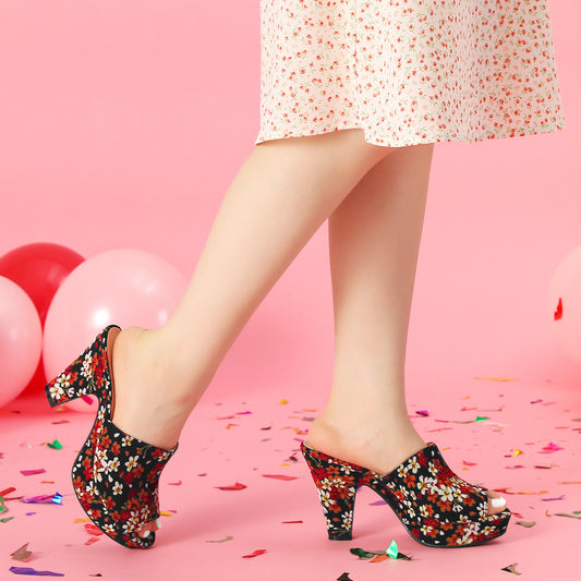 Sandalias de plataforma con tacón grueso y diseño floral para mujer