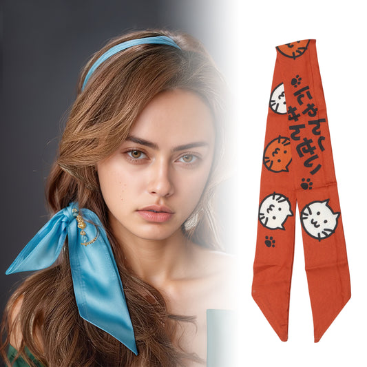 Diadema larga con lazo de gato para mujer, color naranja, 1 unidad