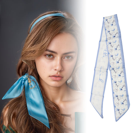 Diadema larga con lazo floral para mujer, color azul, 1 unidad