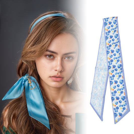 Diadema larga con lazo de flores para mujer, color azul, 1 unidad