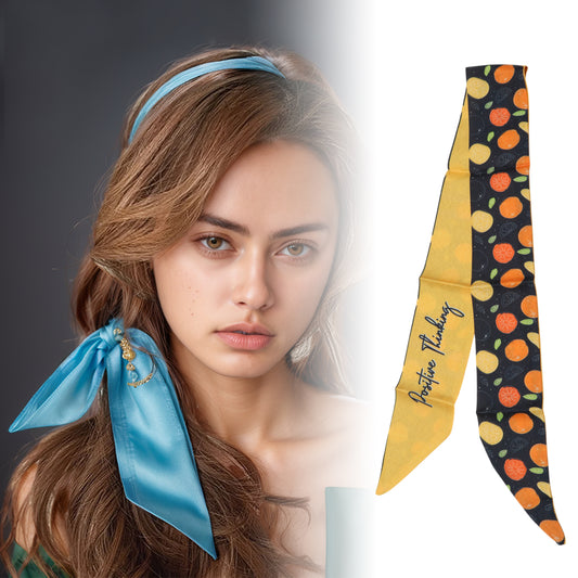 Diadema larga con lazo de frutas para mujer, color negro y naranja, 1 unidad