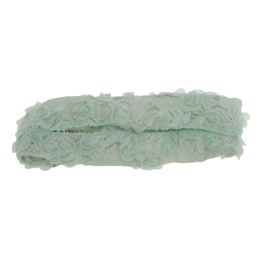 Diadema ancha de encaje con decoración de flores de malla para mujer, color verde claro, 1 unidad
