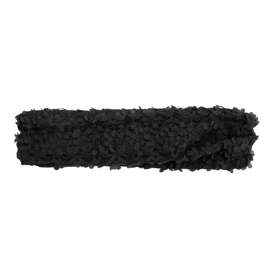 Diadema ancha de encaje floral tridimensional para mujer, color negro, 1 unidad