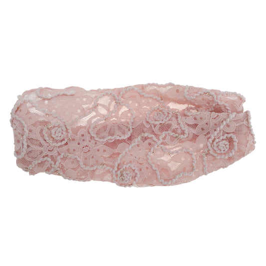 Diadema ancha de encaje de malla floral para mujer, color rosa, 1 unidad