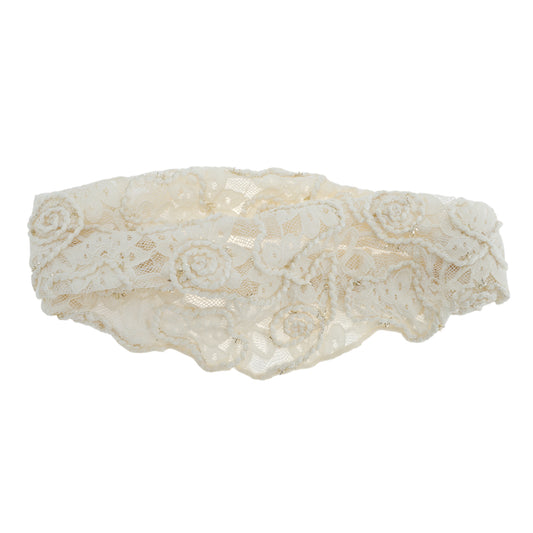 Diadema ancha de encaje de malla floral para mujer beige 1 pieza
