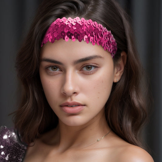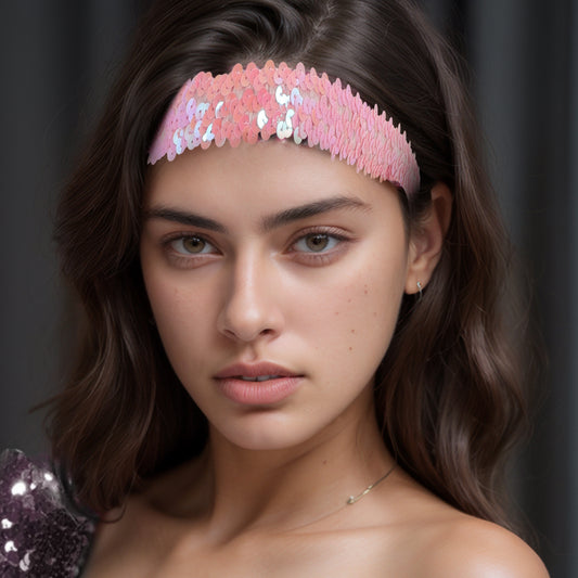 Diademas elásticas con lentejuelas para mujer, color rosa, 1 unidad