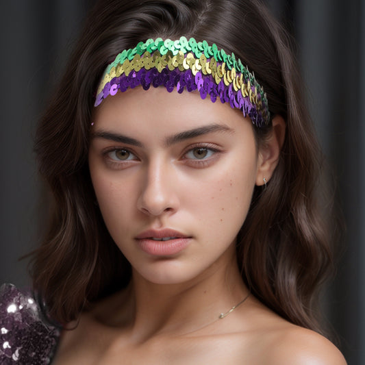 Diademas elásticas con lentejuelas para mujer, color morado y plateado, 1 unidad