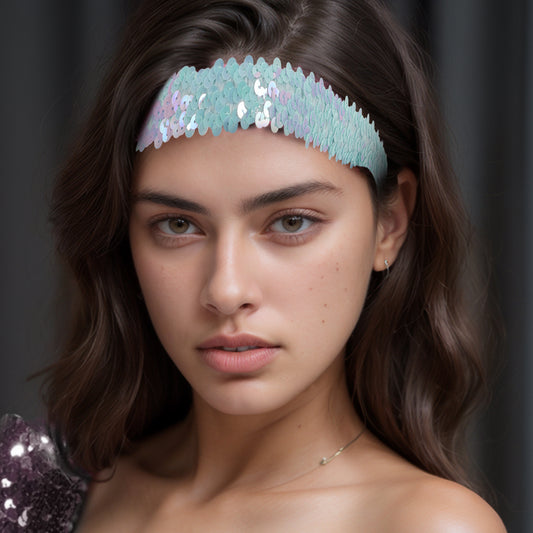 Diademas elásticas con lentejuelas para mujer, color azul claro, 1 unidad