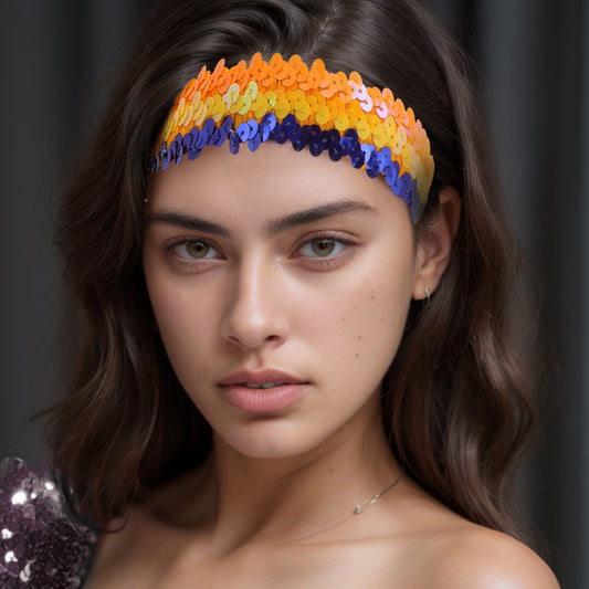 Diademas elásticas con lentejuelas para mujer, color azul y amarillo, 1 unidad