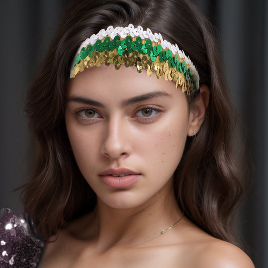 Diademas elásticas con lentejuelas para mujer, color dorado y verde, 1 unidad