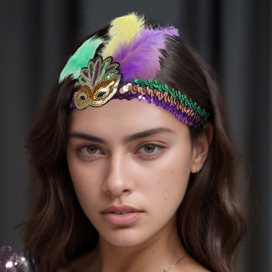 Diademas de plumas y lentejuelas para mujer, color dorado y verde, 1 unidad