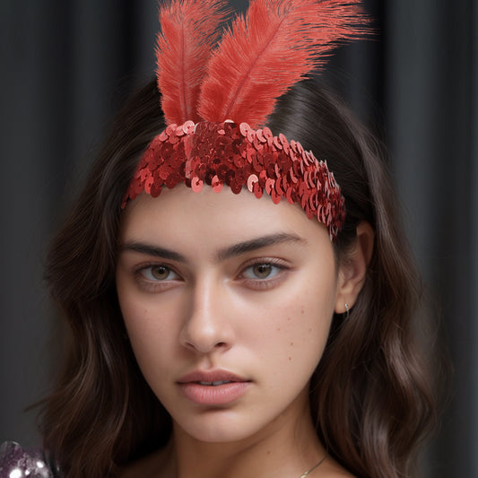 Diademas de plumas y lentejuelas para mujer, color rojo, 1 unidad