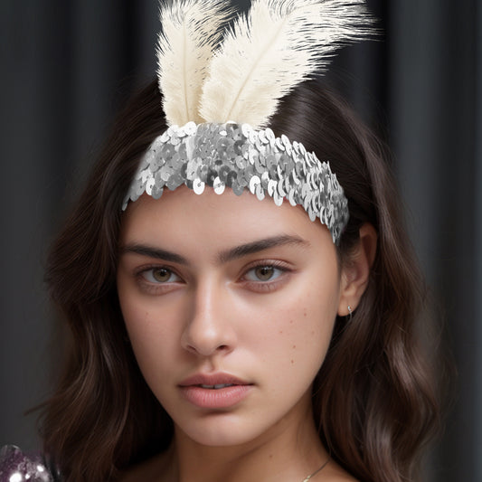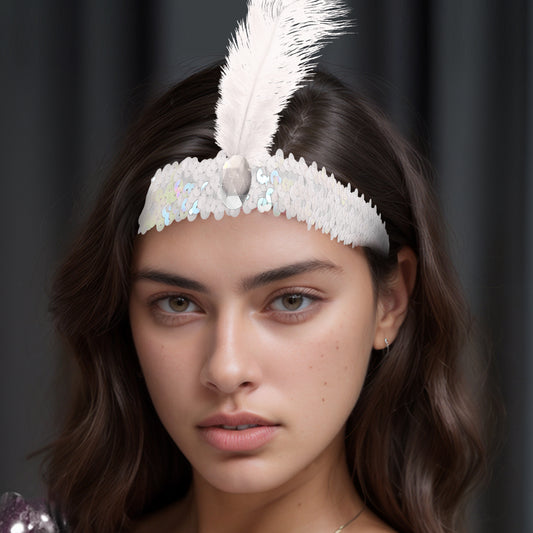 Diademas de plumas y lentejuelas para mujer, color blanco, 1 unidad
