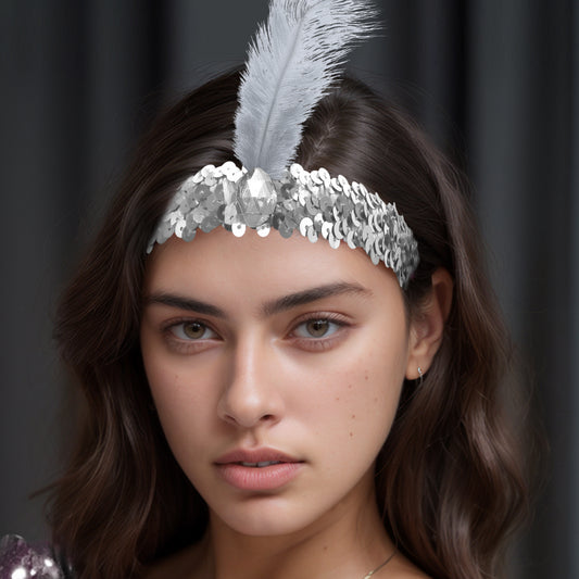 Diademas de lentejuelas con diamantes de imitación y plumas para mujer, color gris, 1 unidad