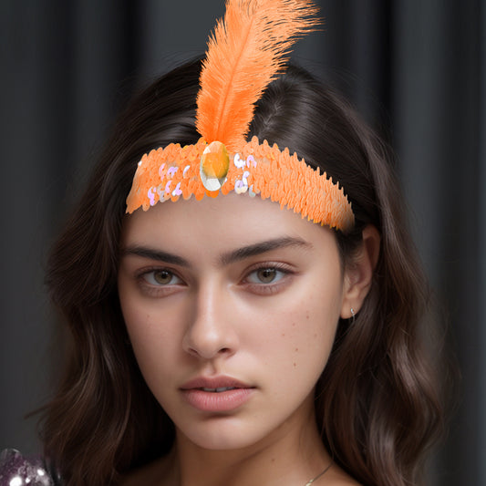 Diademas de lentejuelas con diamantes de imitación y plumas para mujer, color naranja, 1 unidad