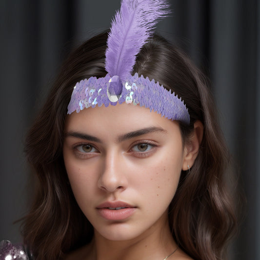 Diademas de lentejuelas con diamantes de imitación y plumas para mujer, color morado claro, 1 unidad