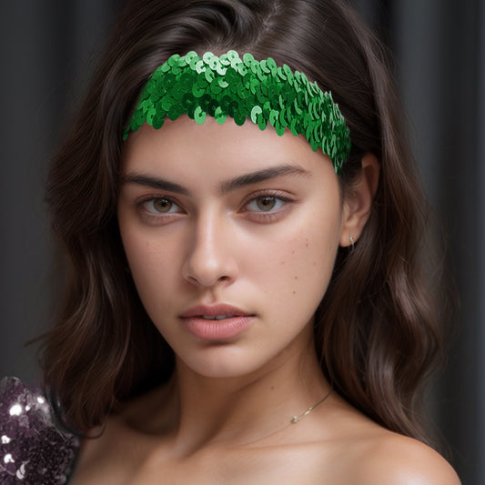Diademas elásticas con lentejuelas para mujer, color verde, 1 unidad