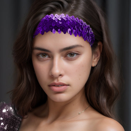 Diademas elásticas con lentejuelas para mujer, color morado, 1 unidad