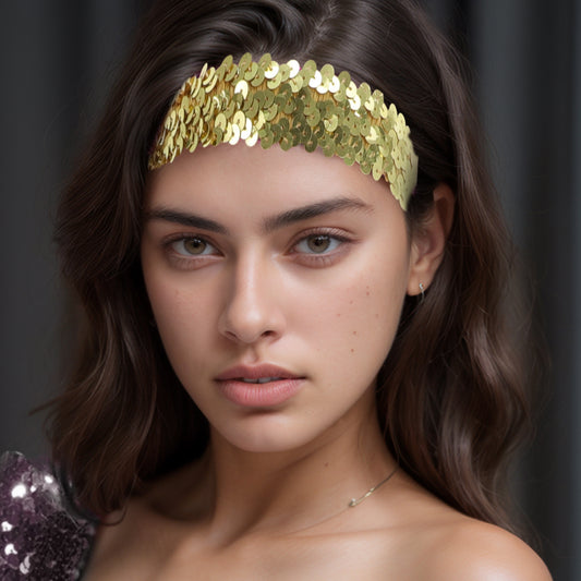 Diademas elásticas con lentejuelas para mujer, tono dorado, 1 unidad