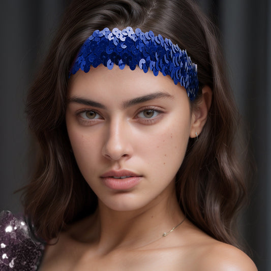 Diademas elásticas con lentejuelas para mujer, color azul oscuro, 1 unidad