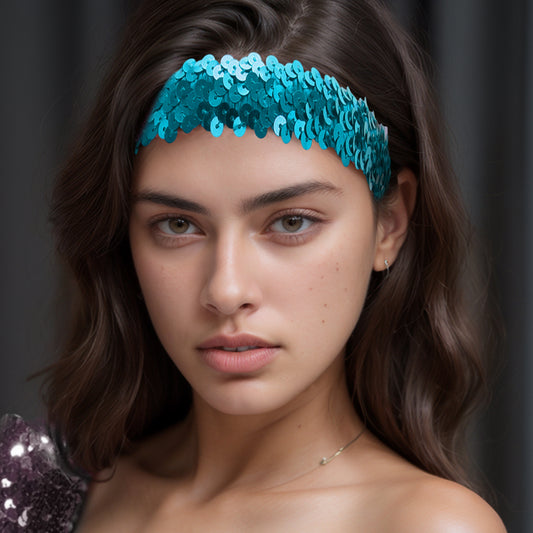 Diademas elásticas con lentejuelas para mujer, color azul, 1 unidad