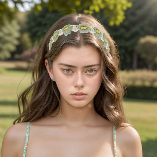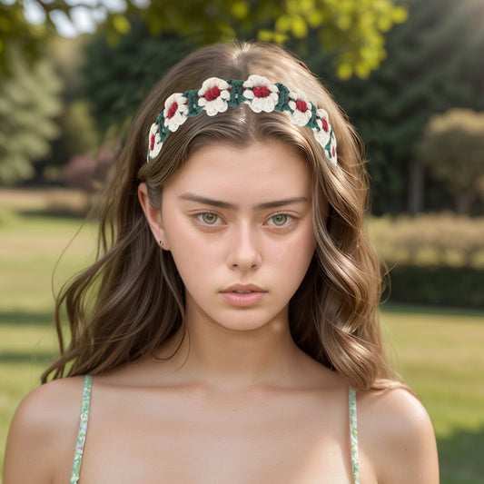Diademas elásticas tejidas a mano para mujer, color blanco y verde, 1 unidad
