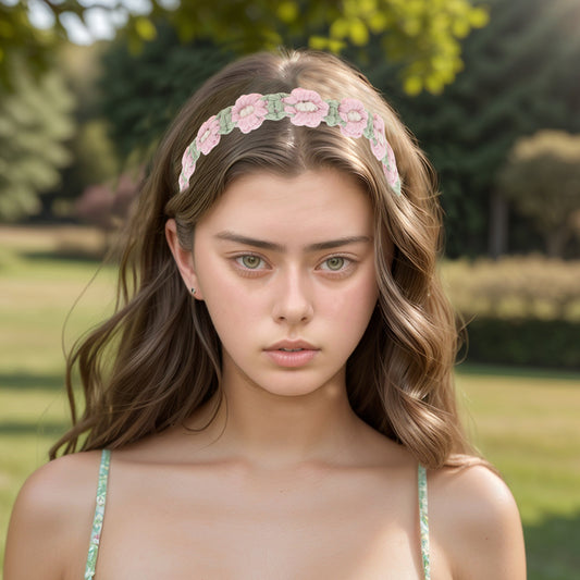 Diademas elásticas tejidas a mano para mujer, color rosa y verde, 1 unidad