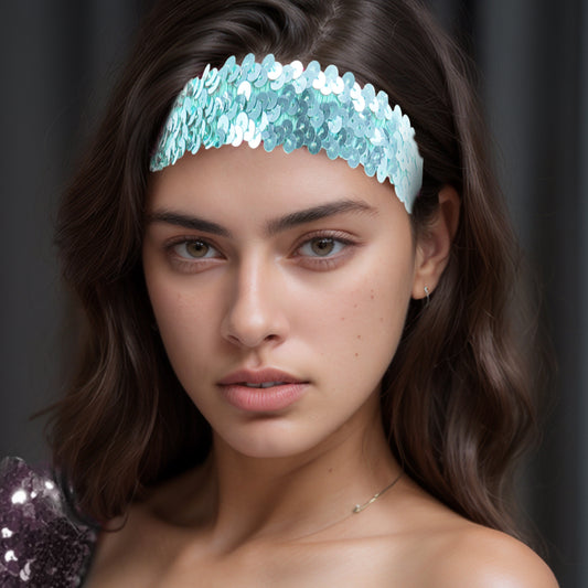 Diademas elásticas con lentejuelas para mujer, color azul claro, 1 unidad
