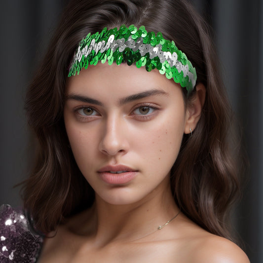 Diademas elásticas con lentejuelas para mujer, color verde y plateado, 1 unidad