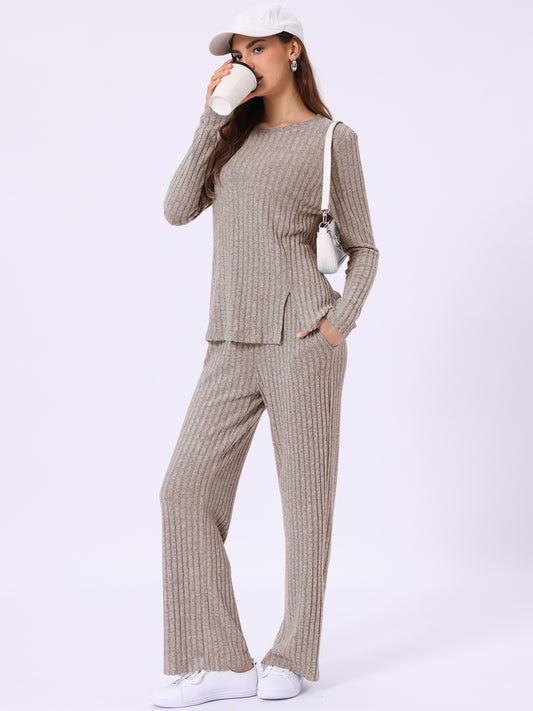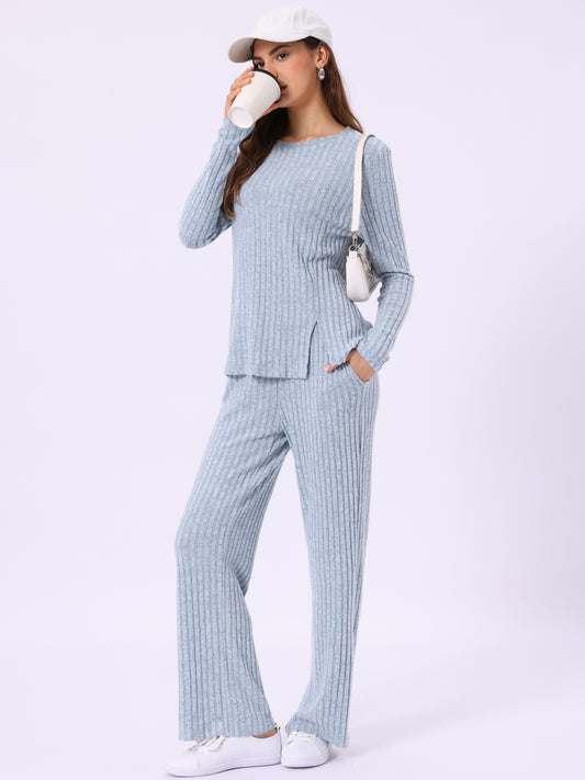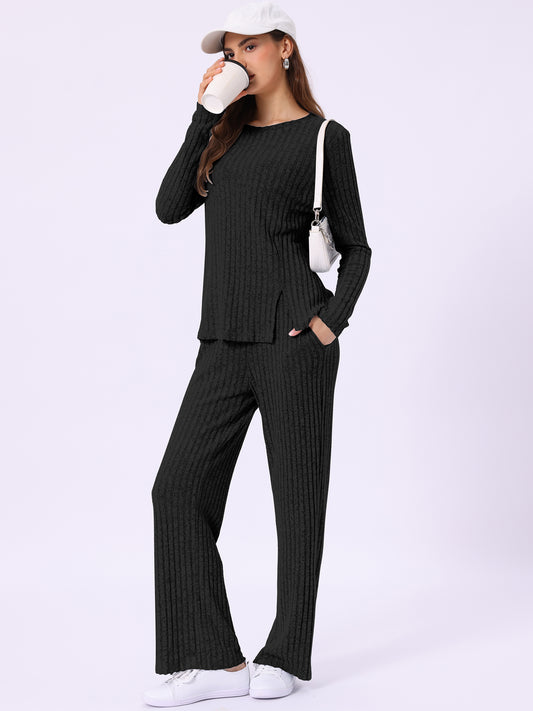 Conjunto de pijama para mujer, cuello redondo, manga larga, pijama suave con bolsillo, ropa de estar por casa