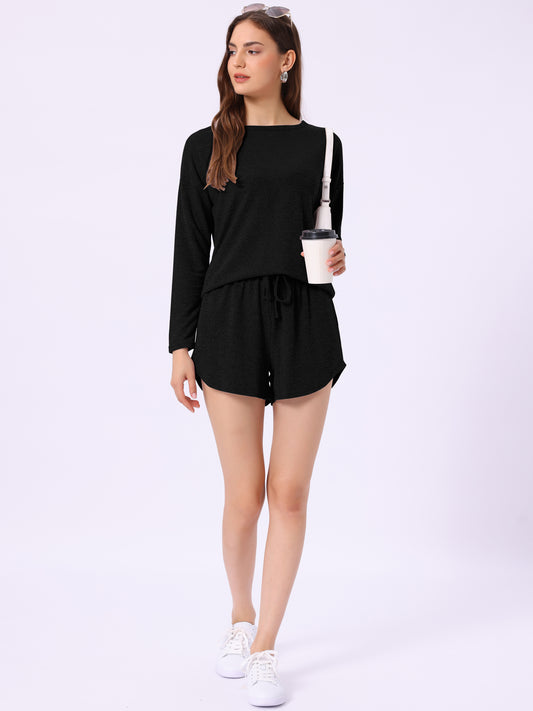 Pijama de mujer con camiseta de manga larga y pantalones cortos, cintura elástica, conjunto de estar por casa a juego, chándal con bolsillos