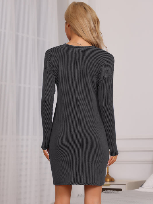 Pijama de mujer, camisón de manga larga con bolsillo delantero y largo hasta el muslo, ropa de dormir para estar en casa