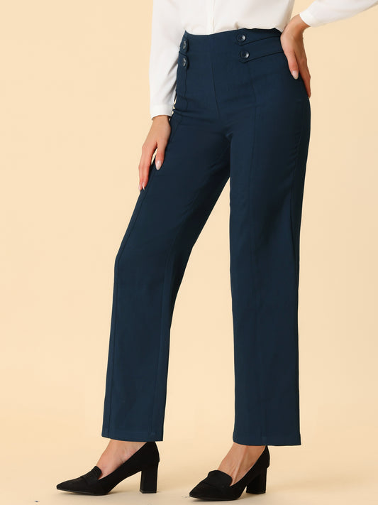 Pantalones de trabajo de cintura alta y pierna recta para mujer, de color liso