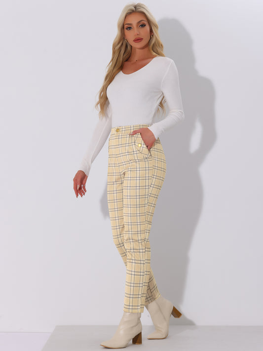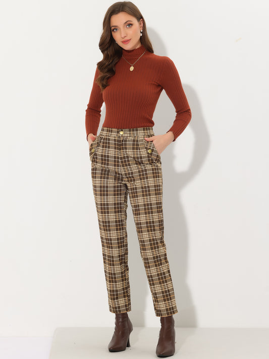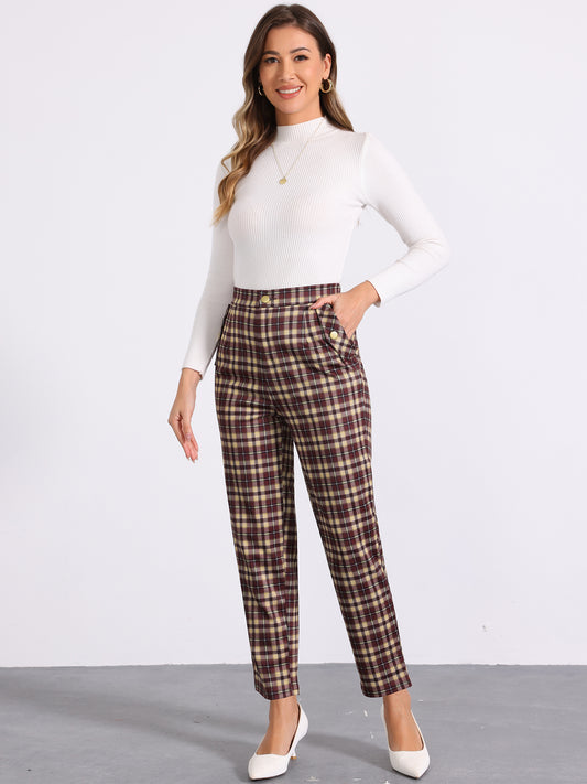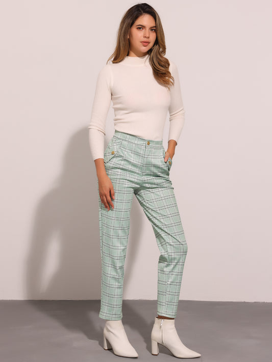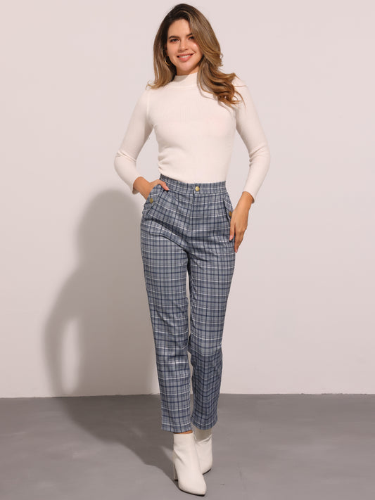 Pantalones de trabajo informales con botones y cuadros escoceses para mujer