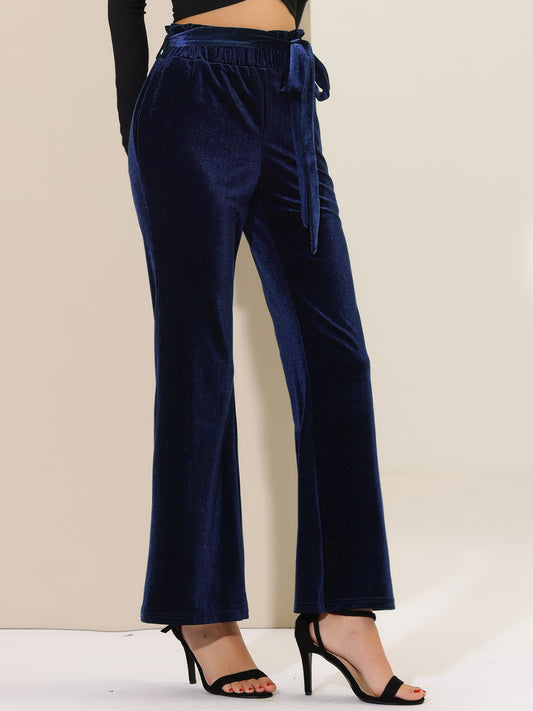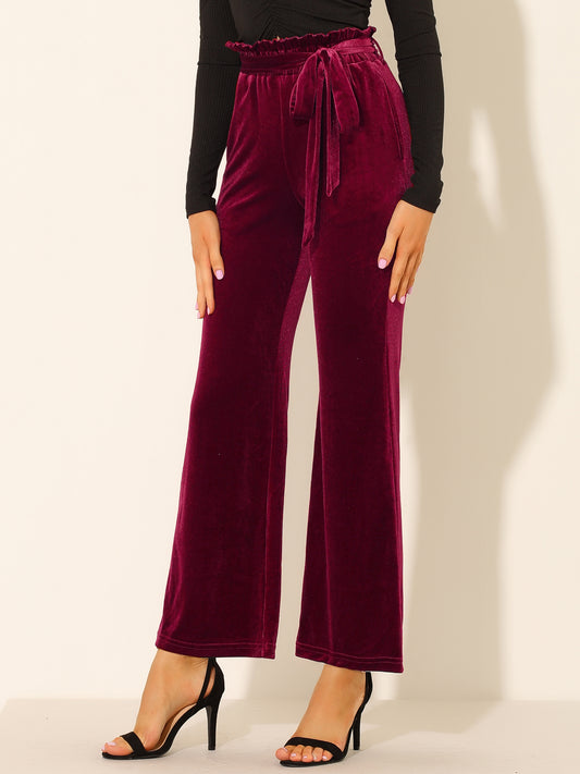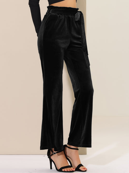Pantalones de terciopelo para mujer, elásticos, de pierna ancha y con bolsillos, para Halloween