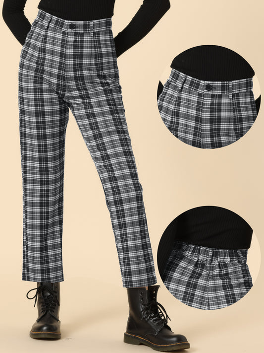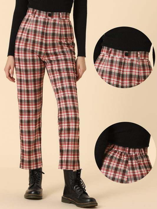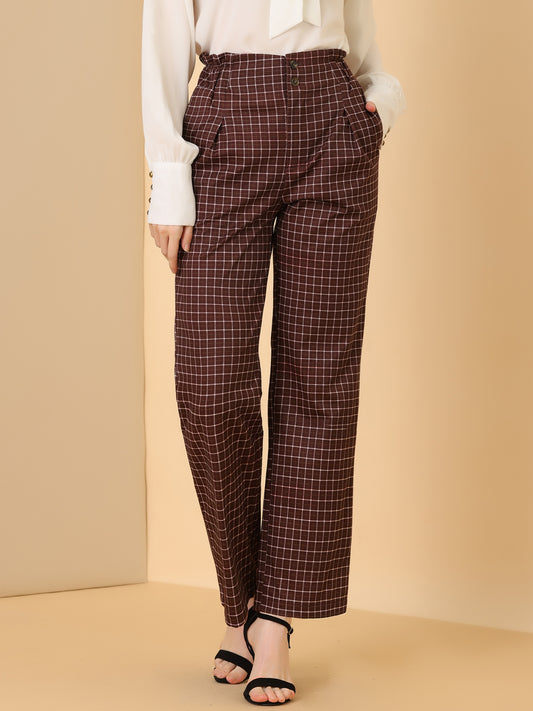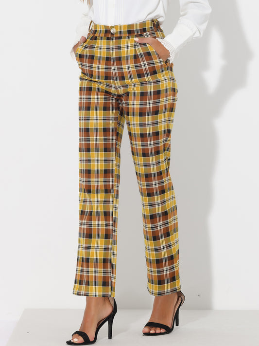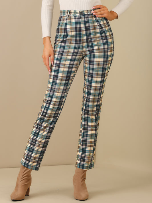 Pantalones largos de cintura alta con estampado de cuadros escoceses y pierna recta para mujer