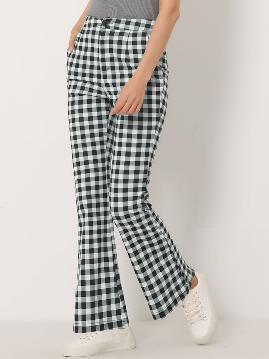 Pantalones acampanados de cintura alta a cuadros para mujer, elásticos y acampanados
