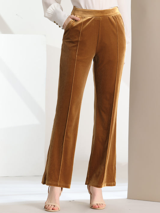 Pantalones de terciopelo para mujer con bolsillos, elegantes pantalones de trabajo de cintura alta y pierna acampanada