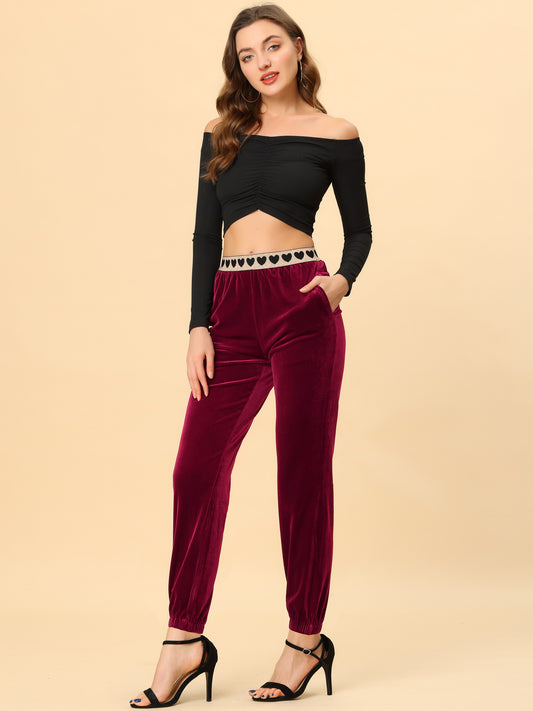 Pantalones deportivos casuales de terciopelo con cintura elástica y largo hasta el tobillo para mujer