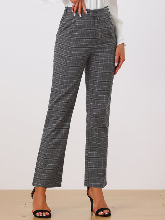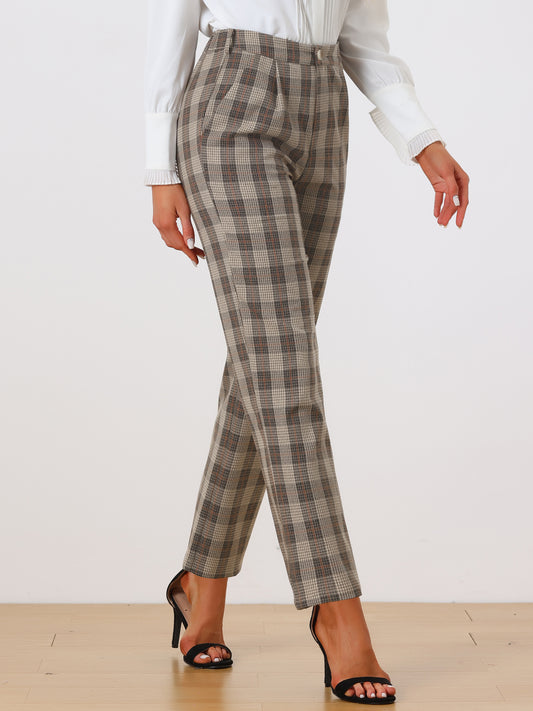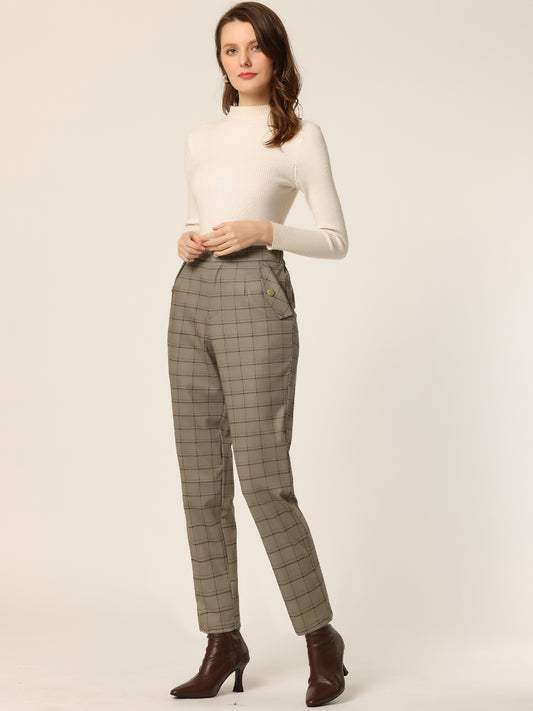 Pantalones a cuadros para mujer, cintura elástica, informales, para trabajo y oficina