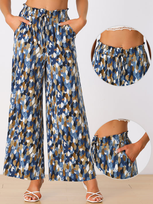 Pantalones casuales para mujer, con estampado de hojas, elásticos, holgados, de pijama con bolsillos