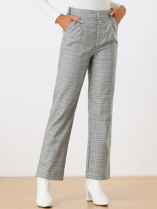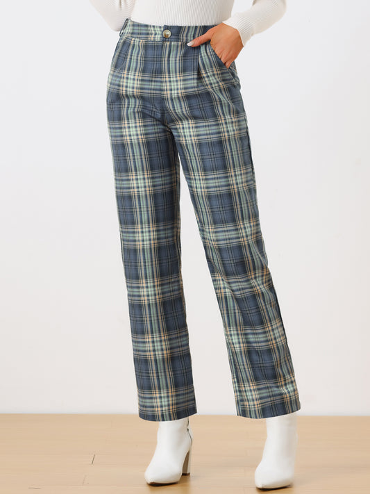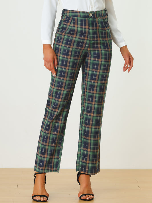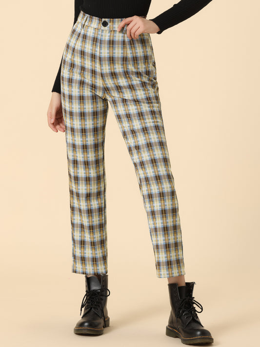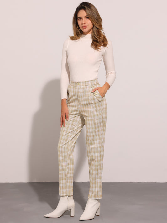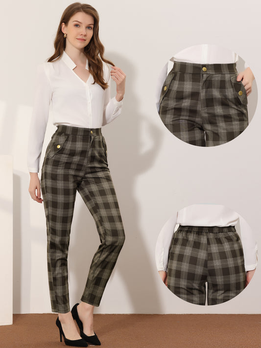 Pantalones de trabajo informales con botones y cuadros escoceses para mujer
