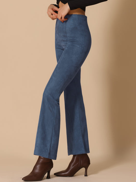 Pantalones de gamuza sintética para mujer, estilo informal de negocios, con piernas anchas y corte acampanado.