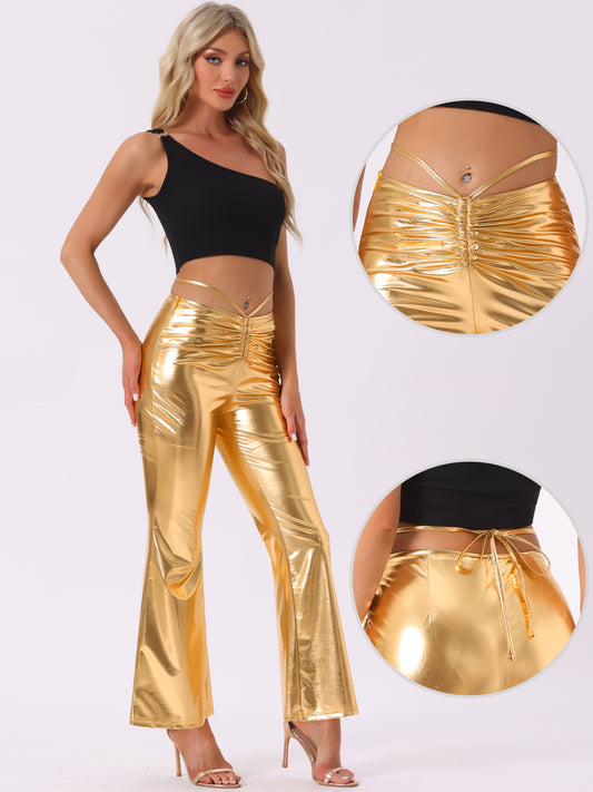 Pantalones anchos metalizados con cordón para mujer, estilo retro de fiesta