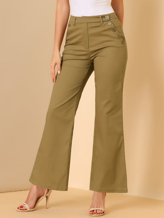 Pantalones largos acampanados de cintura alta para mujer, elegantes pantalones de trabajo